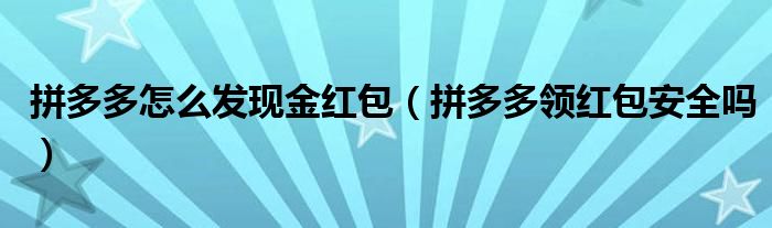 大家好,跳跳为你解答以上问题。拼多多怎么发现金红包,拼多多领红包安全吗这个问题很多人还不知道,现在让我们一起来看看吧!