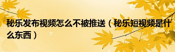 大家好,跳跳为你解答以上问题。秘乐发布视频怎么不被推送,秘乐短视频是什么东西这个问题很多人还不知道,现在让我们一起来看看吧!
