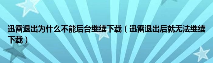 大家好,跳跳为你解答以上问题。迅雷退出为什么不能后台继续下载,迅雷退出后就无法继续下载这个问题很多人还不知道,现在让我们一起来看看吧!