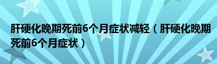 大家好,linda来为大家解答以上的问题。肝硬化晚期死前6个月症状减轻,肝硬化晚期死前6个月症状很多人还不知道,现在让我们一起来看看吧!