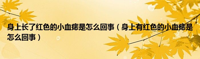 大家好,linda来为大家解答以上的问题。身上长了红色的小血痣是怎么回事,身上有红色的小血痣是怎么回事很多人还不知道,现在让我们一起来看看吧!