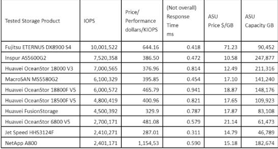 SPC是全球公认的数据存储领导者,在过去20多年中一直为用户提供客观,可靠和经过严格审核的存储系统性能评估。作为组织中测试最积极的程序,SPC Benchmark 1旨在评估处理复杂请求和大量数据的存储系统的性能。该测试索引涉及对八个数据访问方案的压力测试,例如存储系统的读写响应时间敏感性,工作负载多样性和动态变化,系统性能以及长期稳定性。自2019年1月以来,已经发布了来自七家全球存储提供商的11项SPC-1性能结果。