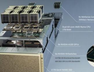 DGX A100是Nvidia的第三代DGX系统,它是第一个包含PCIe Gen4的系统,它使PCI总线上的I / O带宽增加了一倍。当然,要充分利用这一优势,必须使系统中的所有组件都具有该功能。博伊尔说:“ Mellanox CX6 200-gig网卡,PCIe交换和系统内部使用的NVMe存储是Gen4,我们需要一个可以为八个A100s GPU供电的CPU复合体。” “这就是为什么我们选择AMD CPU;它具有我们需要的PCIe Gen4支持,以及我们需要的非常高的核心数量。当我们解决这些越来越大的AI问题时,您需要那些内核才能将数据放入GPU。”