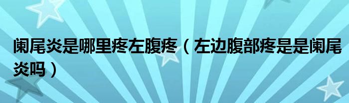 大家好,linda来为大家解答以上的问题。阑尾炎是哪里疼左腹疼,左边腹部疼是是阑尾炎吗很多人还不知道,现在让我们一起来看看吧!