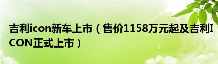 大家好,小常来为大家解答以下问题,对于吉利icon新车上市,售价1158万元起及吉利ICON正式上市很多人还不知道,今天让我们一起来看看吧!
