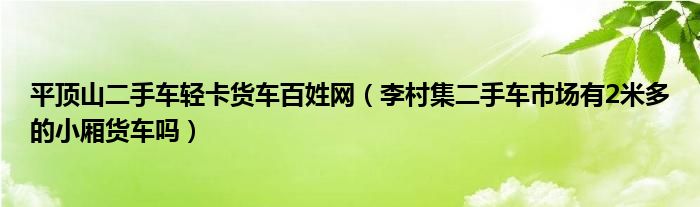 大家好,小常来为大家解答以下问题,对于平顶山二手车轻卡货车百姓网,李村集二手车市场有2米多的小厢货车吗很多人还不知道,今天让我们一起来看看吧!
