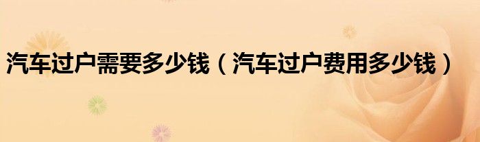 2,车辆过户需要多少费用 :机动车过户需要手续费200元左右。车辆过户税费,是车辆评估值的2%,规定800元封顶。过户需要车辆违章事故处理完毕,车辆手续证件齐全。