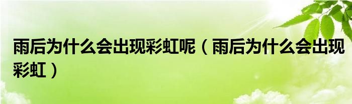 大家好,小晋来为大家解答以下问题,关于雨后为什么会出现彩虹呢,雨后为什么会出现彩虹很多人还不知道,今天让我们一起来看看吧!