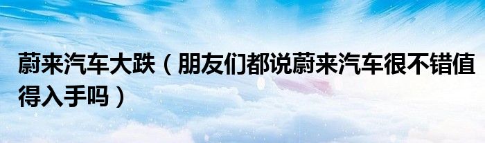 大家好,小常来为大家解答以下问题,对于蔚来汽车大跌,朋友们都说蔚来汽车很不错值得入手吗很多人还不知道,今天让我们一起来看看吧!