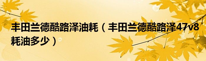 大家好,小常来为大家解答以下问题,对于丰田兰德酷路泽油耗,丰田兰德酷路泽47v8耗油多少很多人还不知道,今天让我们一起来看看吧!