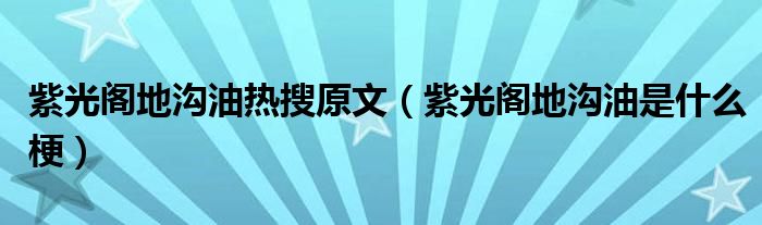 大家好,小晋来为大家解答以下问题,关于紫光阁地沟油热搜原文,紫光阁地沟油是什么梗很多人还不知道,今天让我们一起来看看吧!