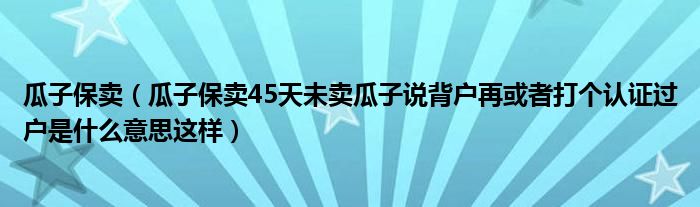 大家好,小常来为大家解答以下问题,对于瓜子保卖,瓜子保卖45天未卖瓜子说背户再或者打个认证过户是什么意思这样很多人还不知道,今天让我们一起来看看吧!
