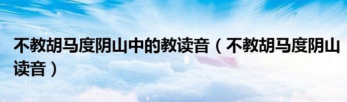 大家好,小晋来为大家解答以下问题,关于不教胡马度阴山中的教读音,不教胡马度阴山读音很多人还不知道,今天让我们一起来看看吧!