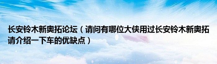 大家好,小常来为大家解答以下问题,对于长安铃木新奥拓论坛,请问有哪位大侠用过长安铃木新奥拓请介绍一下车的优缺点很多人还不知道,今天让我们一起来看看吧!
