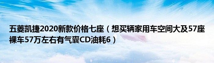 大家好,小常来为大家解答以下问题,对于五菱凯捷2020新款价格七座,想买辆家用车空间大及57座裸车57万左右有气囊CD油耗6很多人还不知道,今天让我们一起来看看吧!