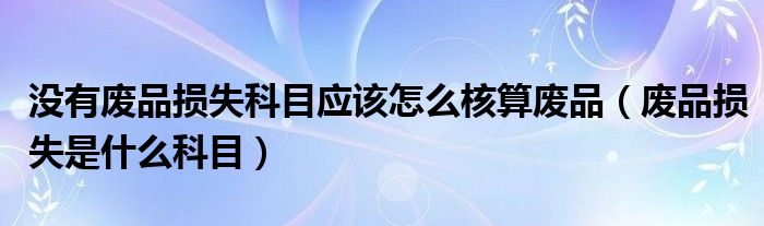 大家好,小晋来为大家解答以下问题,关于没有废品损失科目应该怎么核算废品,废品损失是什么科目很多人还不知道,今天让我们一起来看看吧!