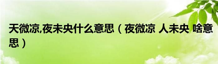 大家好,小晋来为大家解答以下问题,关于天微凉,夜未央什么意思,夜微凉 人未央 啥意思很多人还不知道,今天让我们一起来看看吧!