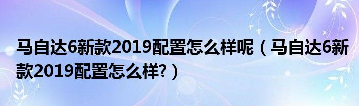 大家好,小美来为大家解答以上问题。马自达6新款2019配置怎么样呢,马自达6新款2019配置怎么样?很多人还不知道,现在让我们一起来看看吧!