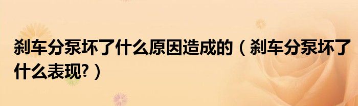 大家好,小美来为大家解答以上问题。刹车分泵坏了什么原因造成的,刹车分泵坏了什么表现?很多人还不知道,现在让我们一起来看看吧!