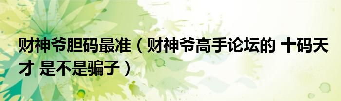 关于财神爷胆码最准,财神爷高手论坛的 十码天才 是不是骗子这个很多人还不知道,今天菲菲来为大家解答以上的问题,现在让我们一起来看看吧!