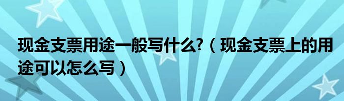 关于现金支票用途一般写什么?,现金支票上的用途可以怎么写这个很多人还不知道,今天菲菲来为大家解答以上的问题,现在让我们一起来看看吧!