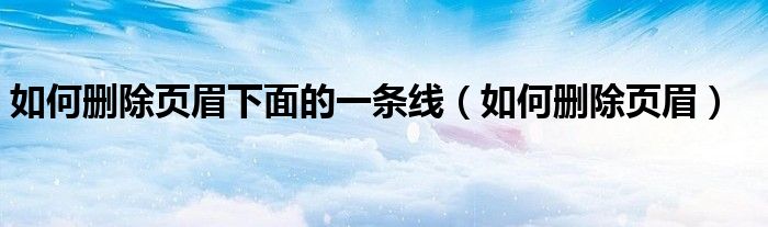 关于如何删除页眉下面的一条线,如何删除页眉这个很多人还不知道,今天菲菲来为大家解答以上的问题,现在让我们一起来看看吧!