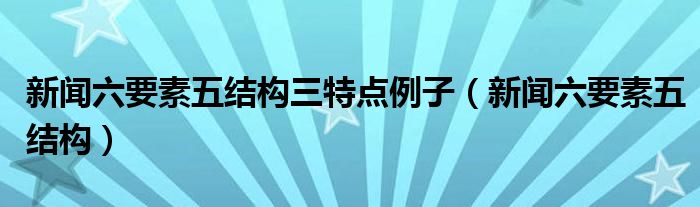 关于新闻六要素五结构三特点例子,新闻六要素五结构这个很多人还不知道,今天菲菲来为大家解答以上的问题,现在让我们一起来看看吧!