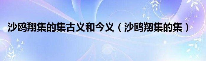 大家好,小晋来为大家解答以下问题,关于沙鸥翔集的集古义和今义,沙鸥翔集的集很多人还不知道,今天让我们一起来看看吧!