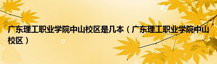 广东理工职业学院中山校区是几本(广东理工职业学院中山校区)
