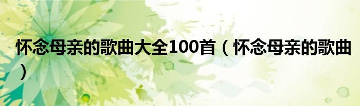 怀念母亲的歌曲大全100首(怀念母亲的歌曲)