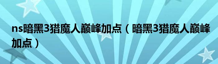 关于ns暗黑3猎魔人巅峰加点,暗黑3猎魔人巅峰加点这个很多人还不知道,今天菲菲来为大家解答以上的问题,现在让我们一起来看看吧!