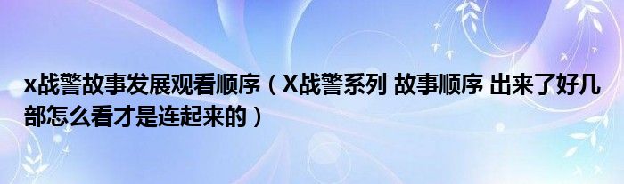 关于x战警故事发展观看顺序,X战警系列 故事顺序 出来了好几部怎么看才是连起来的这个很多人还不知道,今天菲菲来为大家解答以上的问题,现在让我们一起来看看吧!