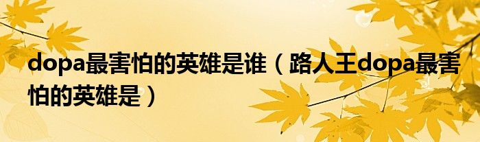 关于dopa最害怕的英雄是谁,路人王dopa最害怕的英雄是这个很多人还不知道,今天菲菲来为大家解答以上的问题,现在让我们一起来看看吧!