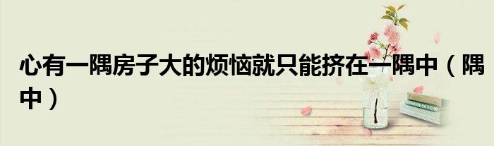 关于心有一隅房子大的烦恼就只能挤在一隅中,隅中这个很多人还不知道,今天菲菲来为大家解答以上的问题,现在让我们一起来看看吧!