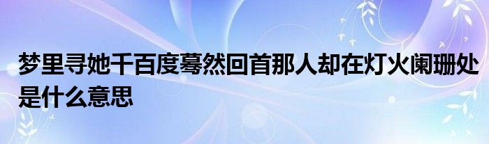 关于梦里寻她千百度蓦然回首那人却在灯火阑珊处是什么意思这个很多人还不知道,今天菲菲来为大家解答以上的问题,现在让我们一起来看看吧!