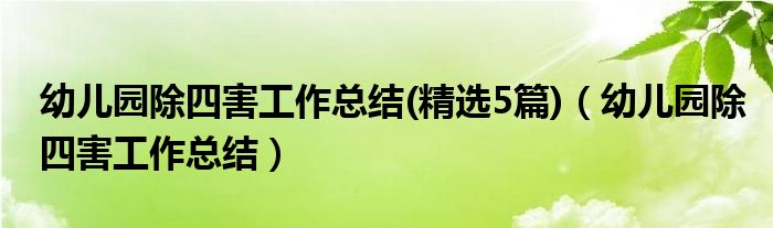 关于幼儿园除四害工作总结(精选5篇),幼儿园除四害工作总结这个很多人还不知道,今天菲菲来为大家解答以上的问题,现在让我们一起来看看吧!