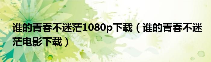 关于谁的青春不迷茫1080p下载,谁的青春不迷茫电影下载这个很多人还不知道,今天菲菲来为大家解答以上的问题,现在让我们一起来看看吧!
