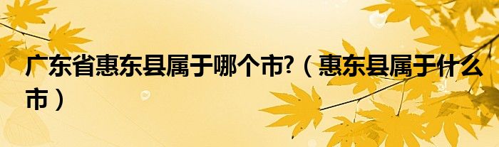 关于广东省惠东县属于哪个市?,惠东县属于什么市这个很多人还不知道,今天菲菲来为大家解答以上的问题,现在让我们一起来看看吧!