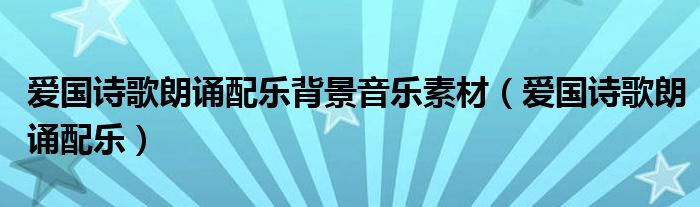 关于爱国诗歌朗诵配乐背景音乐素材,爱国诗歌朗诵配乐这个很多人还不知道,今天菲菲来为大家解答以上的问题,现在让我们一起来看看吧!