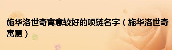 大家好,小晋来为大家解答以下问题,关于施华洛世奇寓意较好的项链名字,施华洛世奇寓意很多人还不知道,今天让我们一起来看看吧!