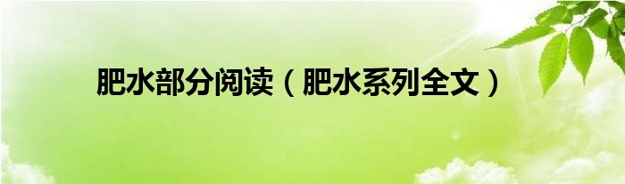 关于肥水部分阅读,肥水系列全文这个很多人还不知道,今天菲菲来为大家解答以上的问题,现在让我们一起来看看吧!
