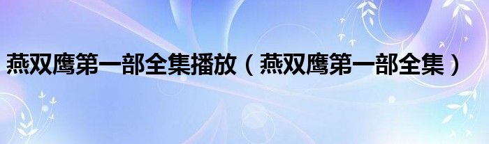 燕双鹰第一部全集播放(燕双鹰第一部全集)