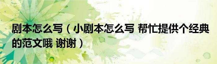 关于剧本怎么写,小剧本怎么写 帮忙提供个经典的范文哦 谢谢这个很多人还不知道,今天菲菲来为大家解答以上的问题,现在让我们一起来看看吧!