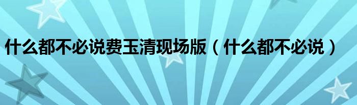 关于什么都不必说费玉清现场版,什么都不必说这个很多人还不知道,今天菲菲来为大家解答以上的问题,现在让我们一起来看看吧!