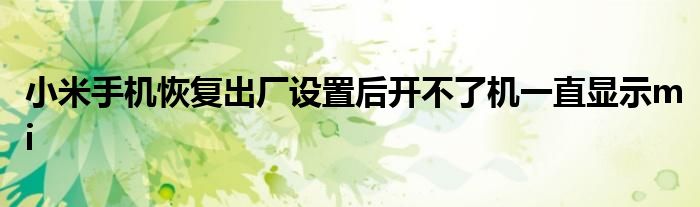 关于小米手机恢复出厂设置后开不了机一直显示mi这个很多人还不知道,今天菲菲来为大家解答以上的问题,现在让我们一起来看看吧!
