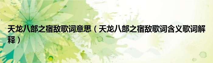 关于天龙八部之宿敌歌词意思,天龙八部之宿敌歌词含义歌词解释这个很多人还不知道,今天菲菲来为大家解答以上的问题,现在让我们一起来看看吧!