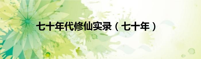 关于七十年代修仙实录,七十年这个很多人还不知道,今天菲菲来为大家解答以上的问题,现在让我们一起来看看吧!