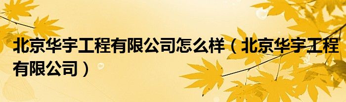 关于北京华宇工程有限公司怎么样,北京华宇工程有限公司这个很多人还不知道,今天菲菲来为大家解答以上的问题,现在让我们一起来看看吧!