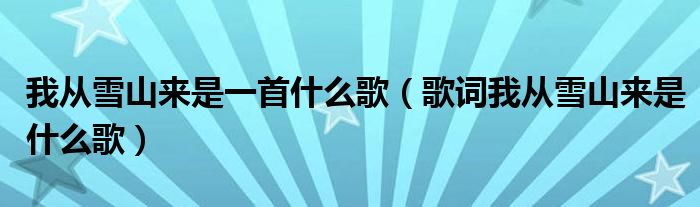 关于我从雪山来是一首什么歌,歌词我从雪山来是什么歌这个很多人还不知道,今天菲菲来为大家解答以上的问题,现在让我们一起来看看吧!