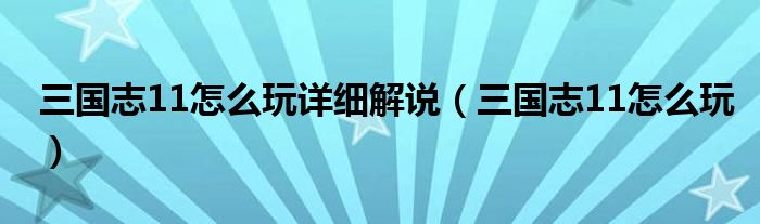 三国志11怎么玩详细解说(三国志11怎么玩)